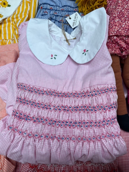 A beautifully handmade smock dress for baby girls, crafted with delicate detail and timeless charm.